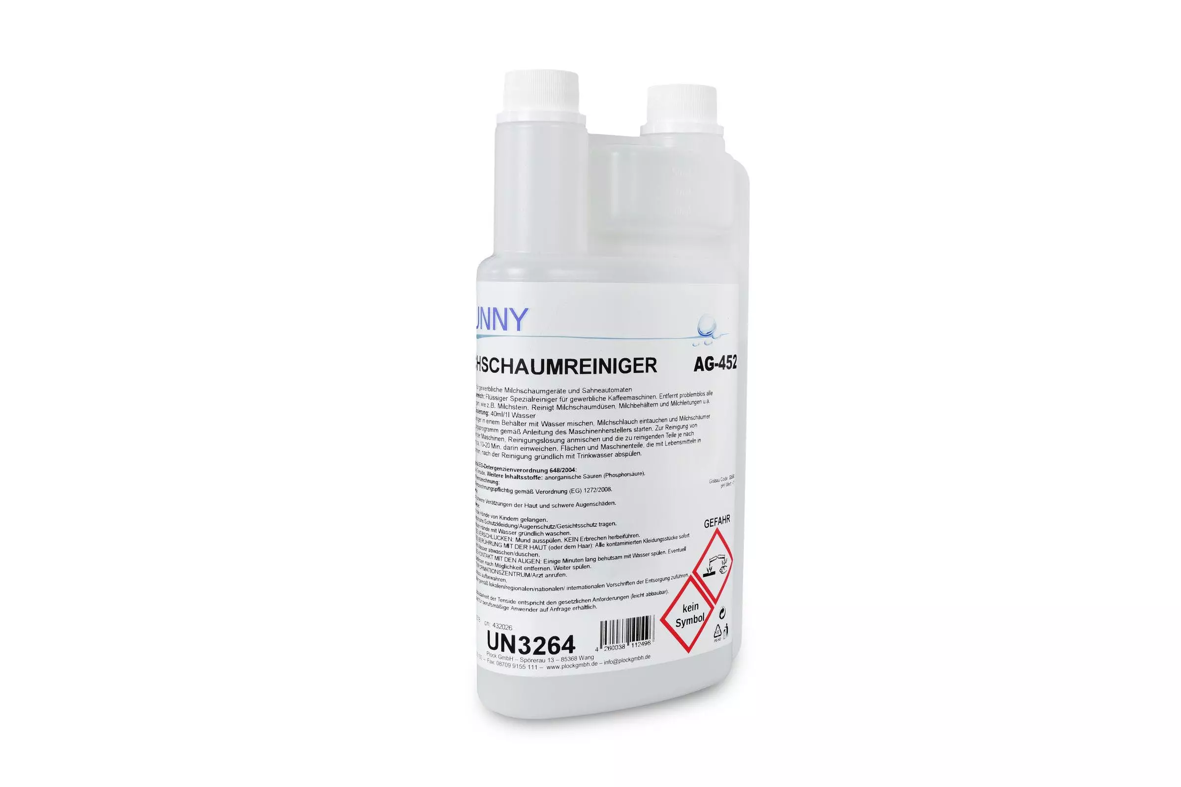 Unser FUNNY Milchschaumreiniger ist ein vielfach bewährter Spezialreiniger für Milchschaumgeräte und Sahneautomaten und ist vor allem für gewerbliche Kaffeevollautomaten und Espressomaschinen entwickelt worden. Der Milchschaumreiniger in der praktischen 1 l Flasche mit dem Doppelhals enthält eine spezielle Dosierkammer, mit der Ihr Personal automatisch die richtige Menge verwendet. Damit wird die Milcheinheit Ihrer Kaffeemaschine schnell und problemlos entkalkt und gereinigt. Das Reinigungskonzentrat ist sehr ergiebig: Sie benötigen nur 40 ml auf einen Liter Wasser. Das Konzentrat ist mikroplastikfrei zum Schutz der Umwelt.
