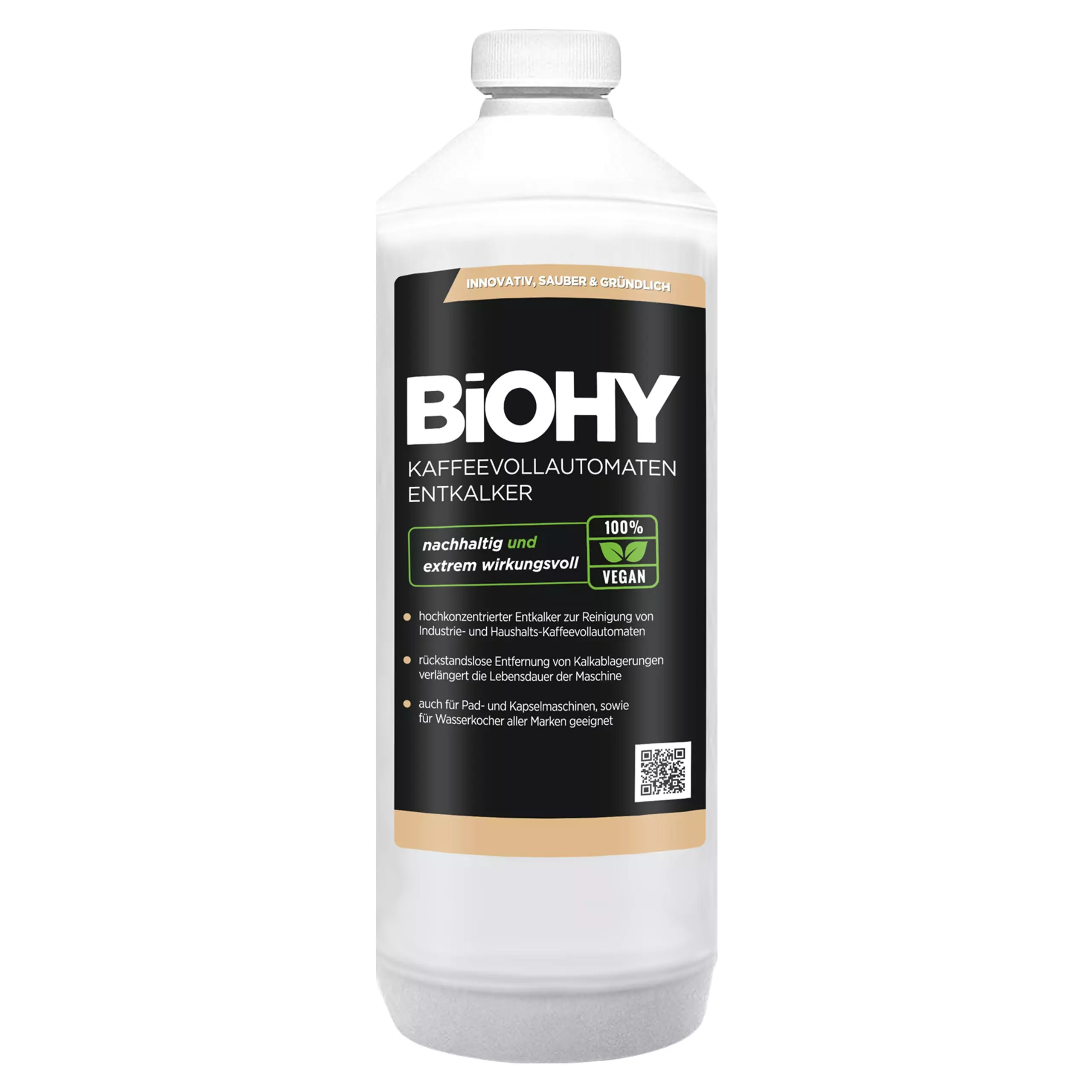 Der BiOHY Kaffeevollautomaten Entkalker ist ein flüssiges Reinigungskonzentrat, welches für eine schonenden und effektive Reinigung Ihres Kaffeevollautomaten sorgt. Durch die rückstandslose Entfernung der Kalkablagerungen, ist die verlängerte Lebensdauer der Maschine garantiert. Mit regelmäßigem Entkalken können Sie auch den Erhalt Ihres aromatischen Kaffeegeschmacks beibehalten. Der Kaffeevollautomaten Entkalker eignet sich, neben dem haushaltsüblichen Gebrauch, ideal für alle Kaffeevollautomaten gewerblicher Art und ist durch seine Konzentrierung sehr ergiebig. Zusätzlich ist der BiOHY Kaffeevollautomaten Entkalker auch für Pad- und Kapselmaschinen, sowie für Wasserkocher aller Marken verwendbar, wie z. B. Siemens, Jura, Saeco, Melitta, Senseo und viele mehr. Hierzu müssen Sie lediglich die Entkalkungsvorschriften der Hersteller beachten.