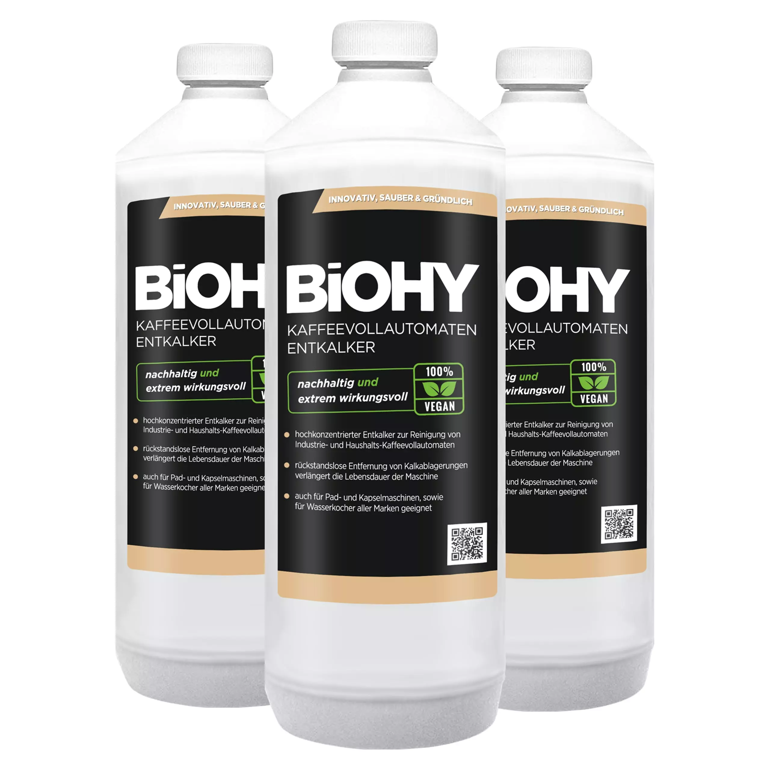 Der BiOHY Kaffeevollautomaten Entkalker ist ein flüssiges Reinigungskonzentrat, welches für eine schonenden und effektive Reinigung Ihres Kaffeevollautomaten sorgt. Durch die rückstandslose Entfernung der Kalkablagerungen, ist die verlängerte Lebensdauer der Maschine garantiert. Mit regelmäßigem Entkalken können Sie auch den Erhalt Ihres aromatischen Kaffeegeschmacks beibehalten. Der Kaffeevollautomaten Entkalker eignet sich, neben dem haushaltsüblichen Gebrauch, ideal für alle Kaffeevollautomaten gewerblicher Art und ist durch seine Konzentrierung sehr ergiebig. Zusätzlich ist der BiOHY Kaffeevollautomaten Entkalker auch für Pad- und Kapselmaschinen, sowie für Wasserkocher aller Marken verwendbar, wie z. B. Siemens, Jura, Saeco, Melitta, Senseo und viele mehr. Hierzu müssen Sie lediglich die Entkalkungsvorschriften der Hersteller beachten.