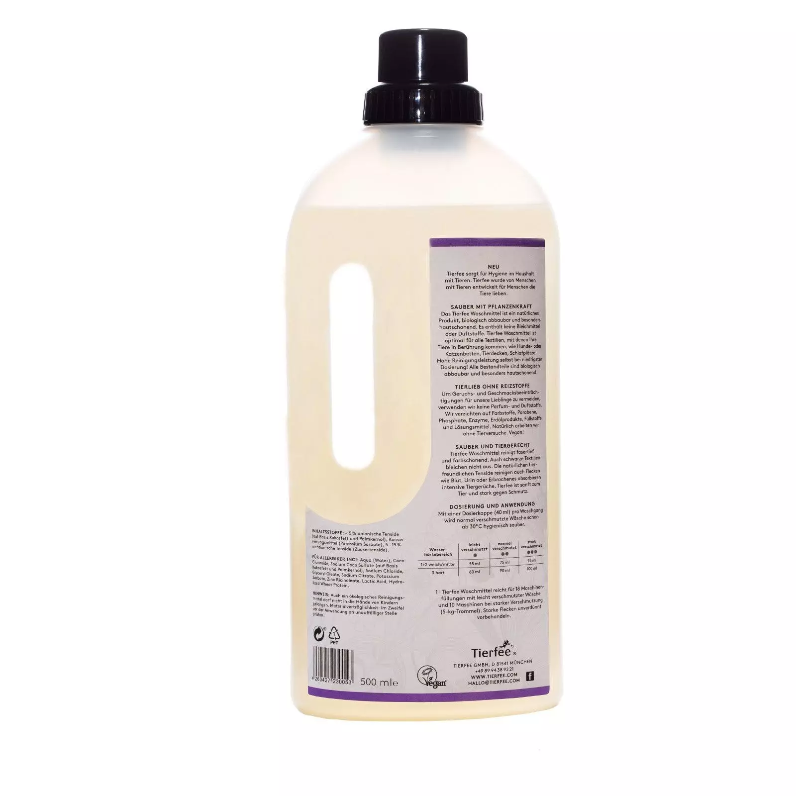 Tierfee ist zusätzlich zu den Inhaltsstoffen auch für Allergiker nach INCI und nach der Detergenzienverordnung auf dem Produkt ausgezeichnet.