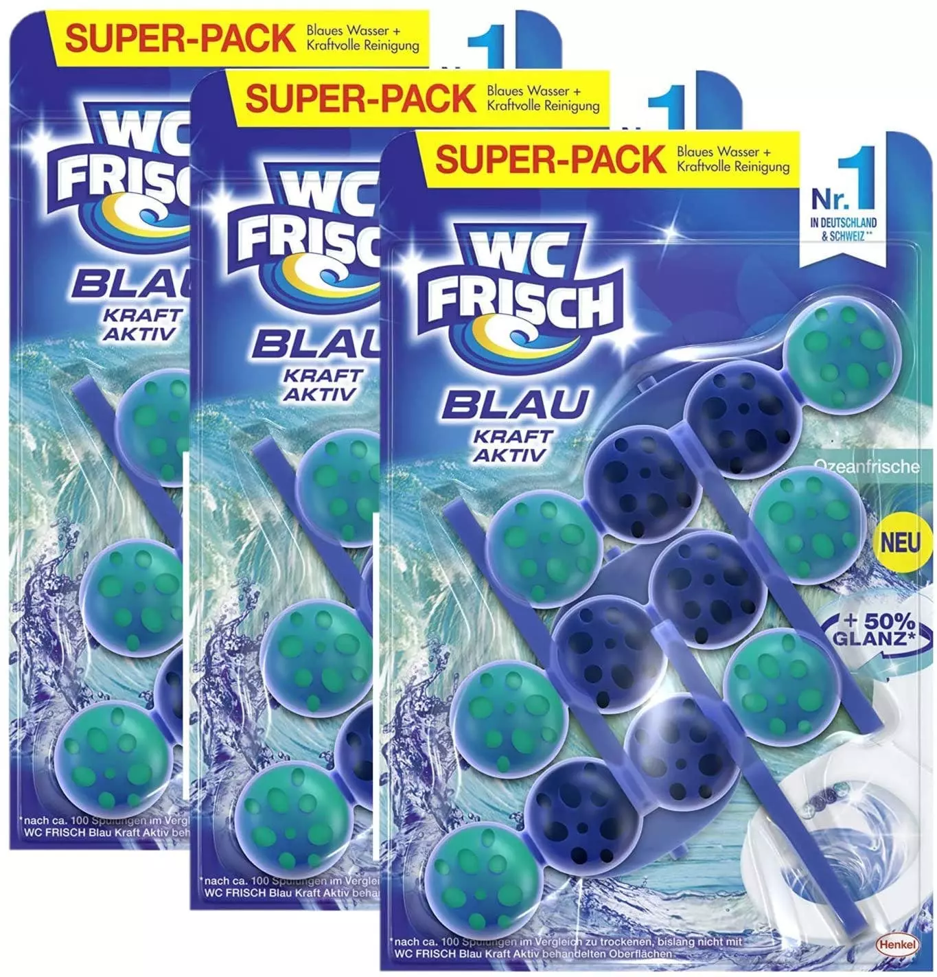 Wäre es nicht wunderbar, wenn Ihre Toilette immer sauber und frisch wie eine blaue Lagune wäre? Dank der Blaue-Wasser-Kugeln, erhält WC FRISCH Kraft Aktiv Blauspüler sichtbar die Sauberkeit und Frische Ihrer Toilette sogar zwischen den Spülungen. Aber wie? Wenn Sie spülen, sammelt das Körbchen von Kraft Aktiv Blauspüler das Wasser, reichert es mit Aktiv-Inhaltsstoffen an und lässt es am Ende der Spülung frei. Der Beweis hierfür ist das blau gefärbte Wasser, welches in Ihrer Toilette zurückbleibt: Für beste Sauberkeit und Frische sogar zwischen den Spülungen.